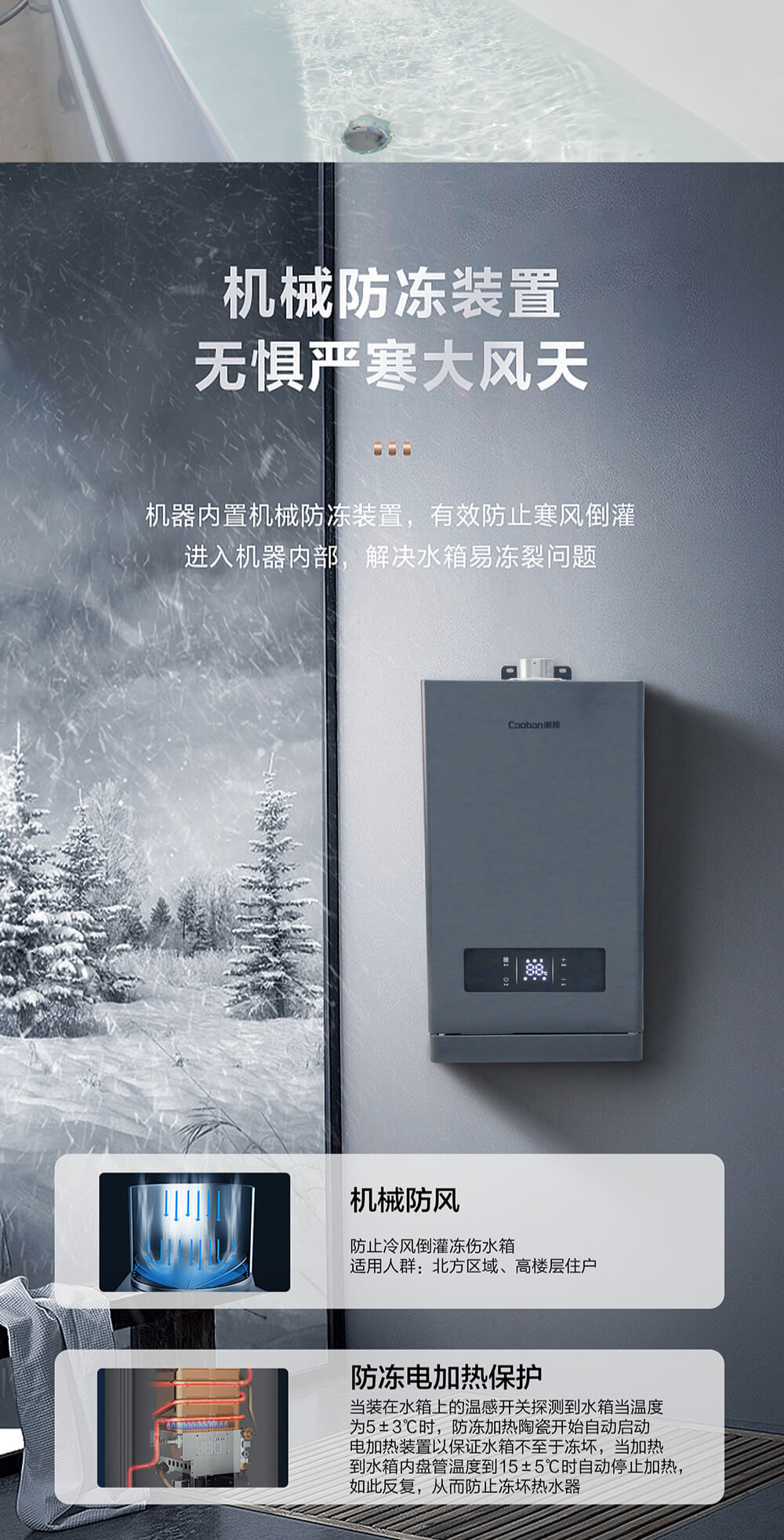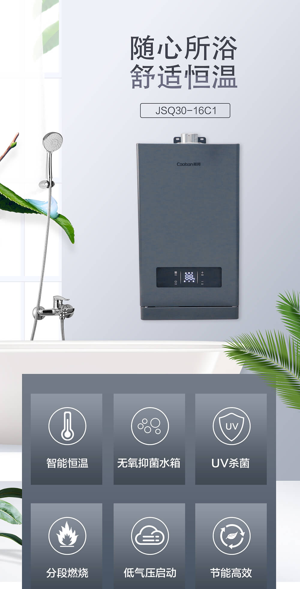 智能恒溫,無氧抑菌水箱,分段燃燒,低氣壓啟動,節能高效。